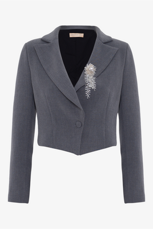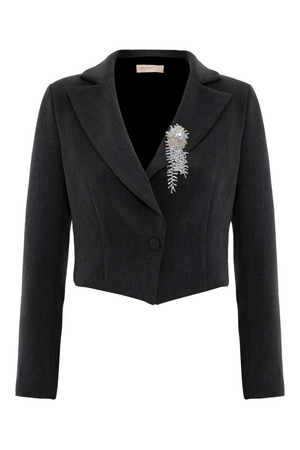 Blazer curto alfaiataria, mangas longas, forro embutido e fechamento frontal por botões. Com broche removível lindo para você criar um efeito bem chique. Adicione charme sobrepondo seus looks com um blazer alfaiataria.