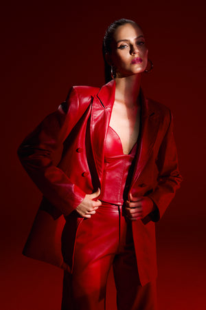 Blazer de couro natural, super versátil, abertura frontal com fechamento por botões, lapelas clássicas, mangas longas, levemente alongado. Uma peça atemporal que traz sofisticação a qualquer look.