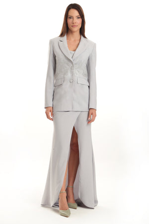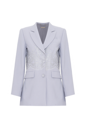 Blazer de crepe, com aplicações de renda, modelagem reta e sutilmente acinturada, super versátil, abertura frontal com fechamento por 2 botões, lapelas clássicas, mangas longas, levemente alongado. Uma peça atemporal que traz sofisticação a qualquer look.