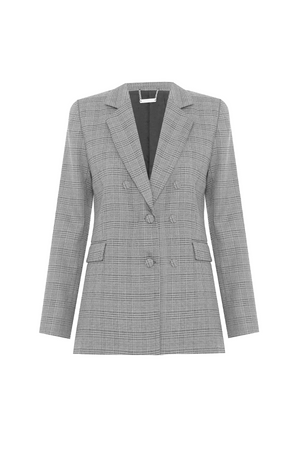 O blazer xadrez está super em alta, é uma peça clássica que pode adicionar estilo e sofisticação a qualquer look, com modelagem reta e sutilmente cinturada, super versátil, abertura frontal com fechamento por botões, lapelas clássicas, mangas longas, e levemente alongado.