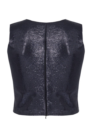 Blusa Lamê Com Recortes Vazados Fundo do Mar