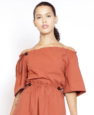 Blusa em Algodão Franzida Ombro a Ombro