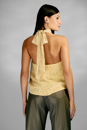 Feita para as mulheres mais elegantes, a blusa frente única de gola alta é a peça perfeita para qualquer ocasião. Com uma estampa exclusiva inspirada na icônica paisagem da Islandia, confeccionada em musseline de alta qualidade, seu design de frente única com amarração no pescoço confere um toque de sofisticação. O leve decote nas costas traz um toque sensual e elegante ao look.