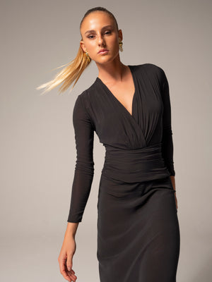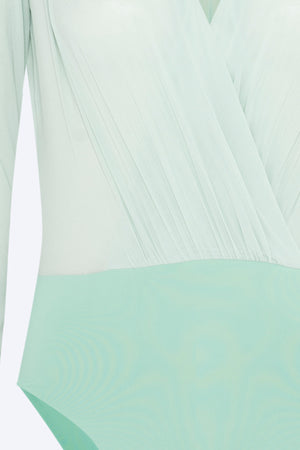 Este lindo Body De Seda Manga Longa em georgete de seda, trazendo conforto e elegância. O decote transpassado em V e os drapeados adicionam um toque sofisticado, enquanto as mangas compridas dão um ar ainda mais elegante. Ideal para deixar qualquer look mais sofisticado e charmoso.