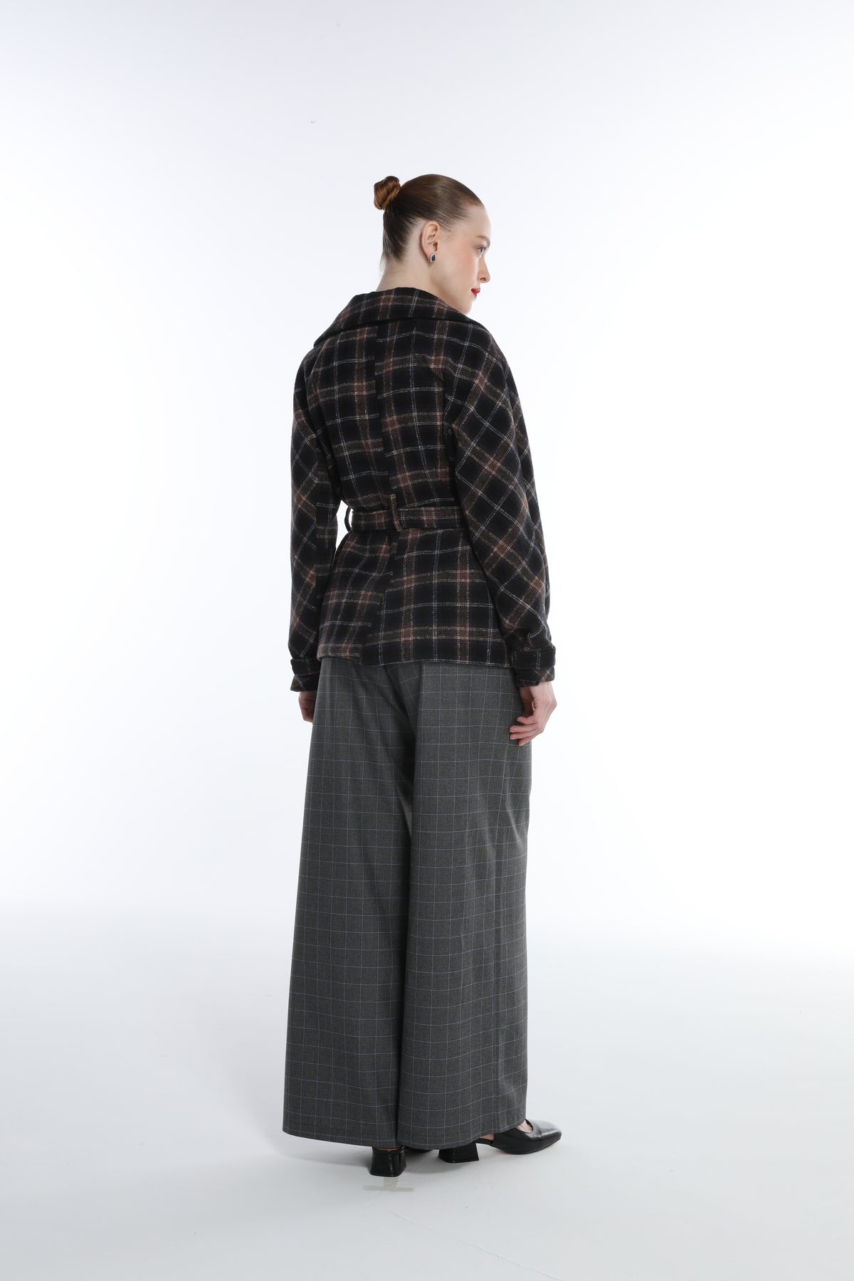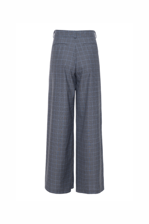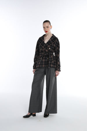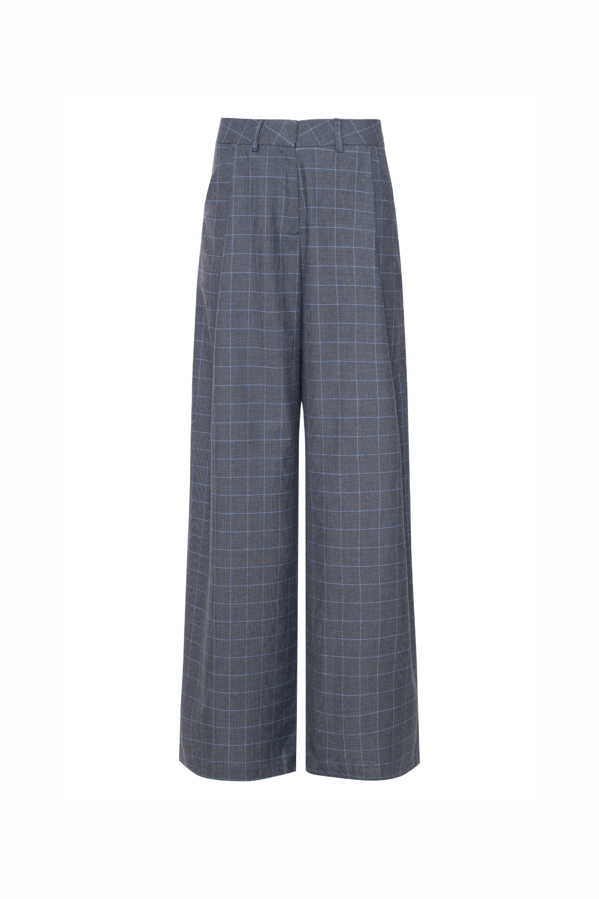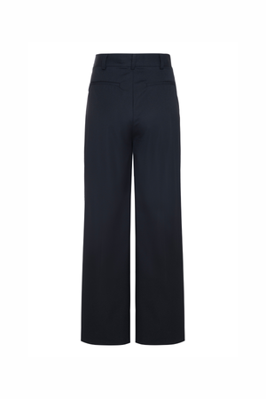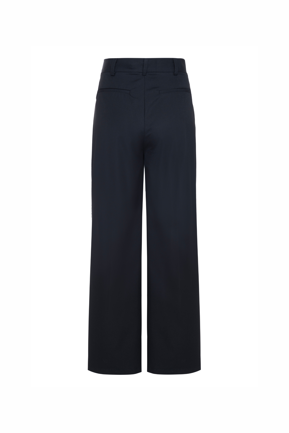 Calça de alfaiataria com modelagem ampla e caimento impecável. O modelo apresenta cintura alta, cós estruturado com passantes e fechamento frontal discreto. A perna larga garante movimento e elegância, criando uma silhueta alongada e sofisticada.