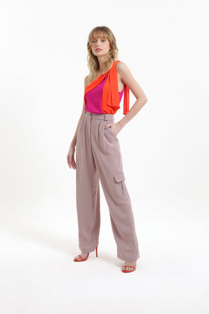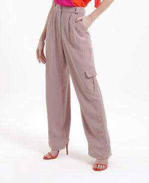 Calça alfaiataria reta em crepe, estilo cargo, com bolsos frente, costas e nas laterais, cós com presilhas, detalhes de pregas na frente e fechamento com zíper. Uma peça versátil para mulheres que sabem o que querem e tem bom gosto ao se produzir.