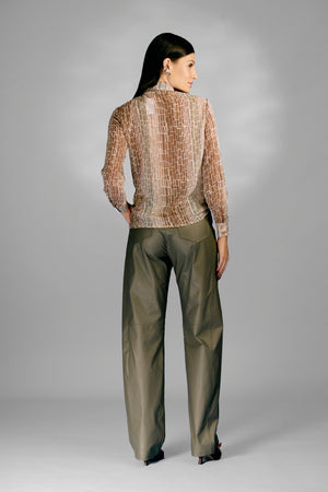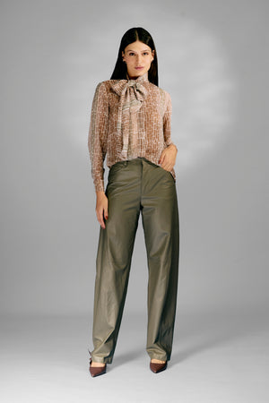 Calça Barrel Couro Natural
