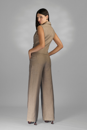 Desenvolvida para proporcionar estilo e conforto, a Calça Linho Costura Deslocada é feita em 10% linho e possui modelagem de perna ampla. Com costura estratégica deslocada, a peça cria uma linha que alonga e afina a silhueta, garantindo um visual elegante e sofisticado.