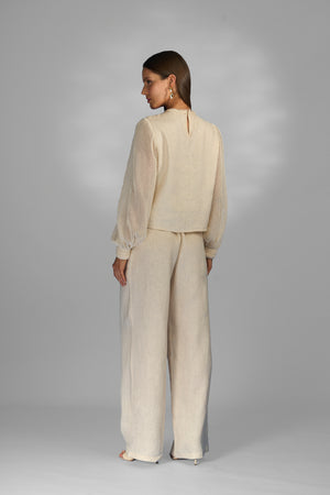 A calça linho com bolso faca é uma peça sofisticada e elegante, perfeita para ocasiões formais. Feita em 100% linho, possui pregas no cós e bolsos faca, garantindo um visual impecável. Um item essencial para o seu closet devido à sua versatilidade e alta qualidade.