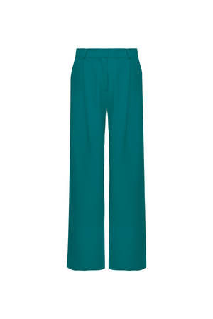 Calça alfaiataria de crepe com bolso faca e pregas.