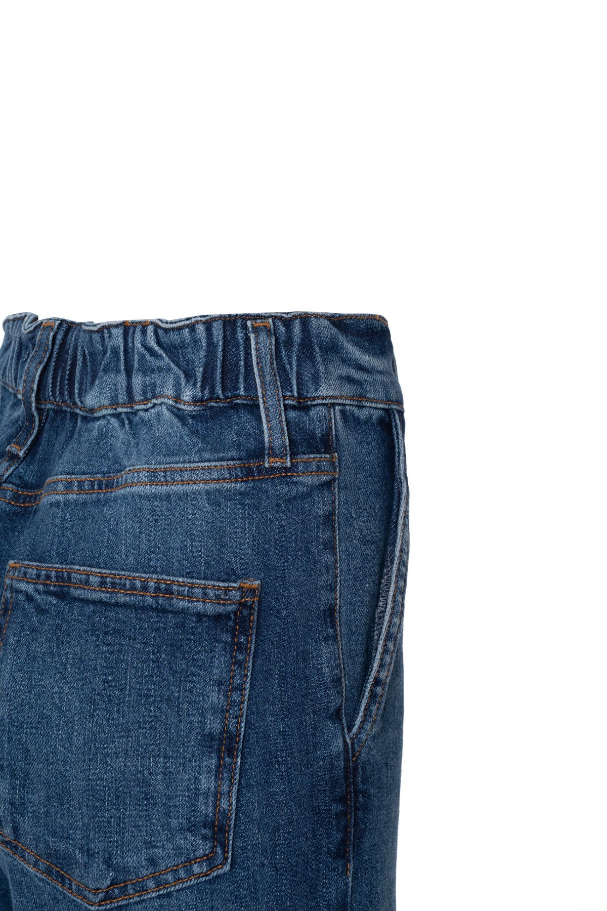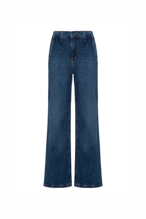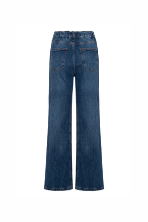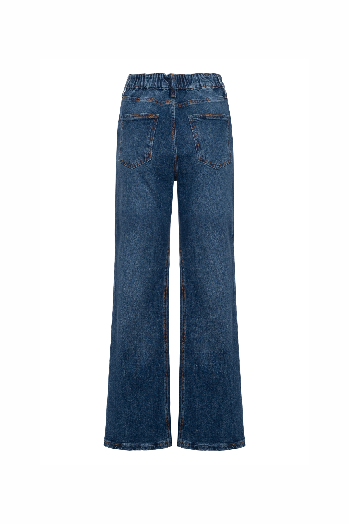 Calça jeans de modelagem reta, com caimento estruturado e confortável. O modelo apresenta cintura média, cós com passantes e fechamento frontal clássico. Os bolsos faca laterais adicionam praticidade e um toque contemporâneo ao design.