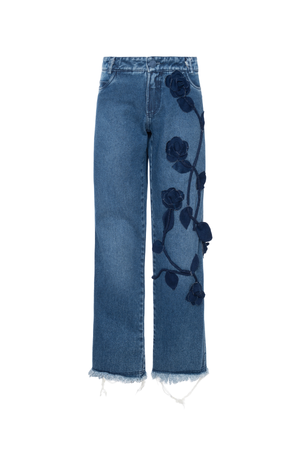 Aposte em um visual autêntico e cheio de personalidade com esta calça jeans de cintura baixa e modelagem reta, perfeita para compor looks modernos e confortáveis. O grande destaque fica por conta das aplicações de flores em tecido malha denim, que trazem um charme delicado e diferenciado à peça. O modelo conta com cós com passantes, permitindo o uso com cintos para diversas combinações, além de fechamento frontal tradicional que garante praticidade no dia a dia. As barras com leve desfiado adicionam um toque despojado e atual, ideal para quem gosta de um estilo casual com atitude.