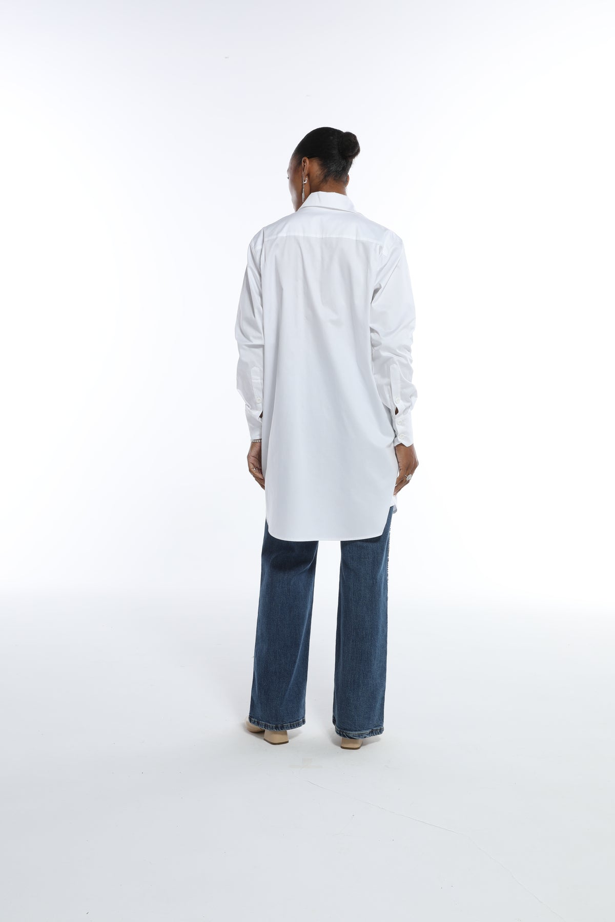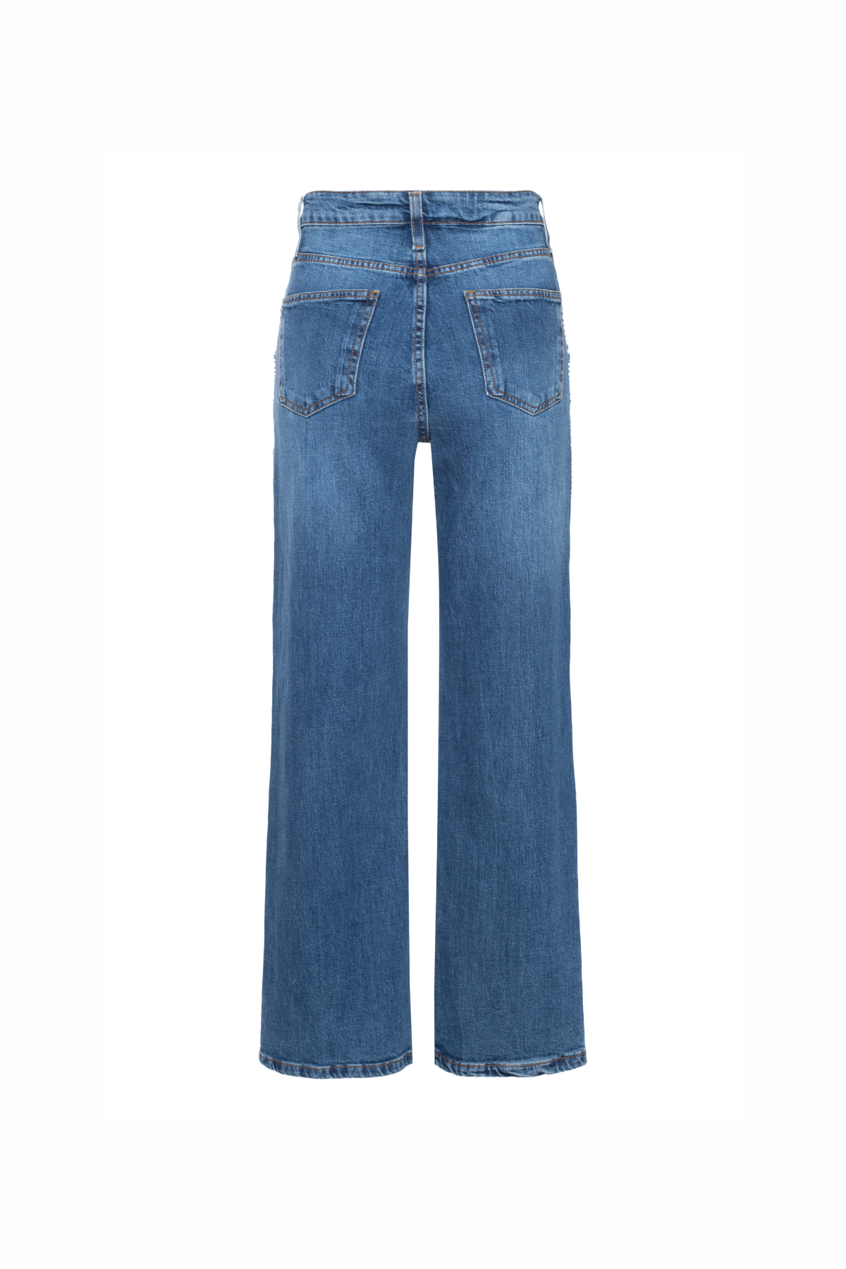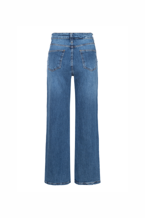 Calça jeans de modelagem wide leg, com caimento estruturado e confortável. O modelo apresenta cintura média, cós com passantes, fechamento frontal tradicional e bolsos funcionais. Um design clássico e versátil, perfeito para compor produções casuais ou sofisticadas com facilidade.