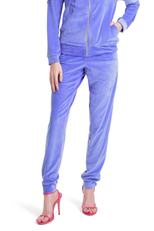 Calça jogging clássica de veludo com punho, e amarrações ajustáveis no cós.