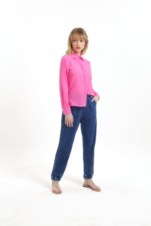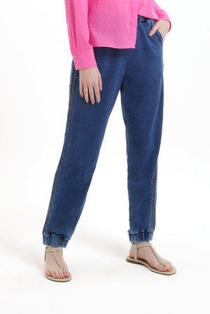 Calça Jogging Denim com Nervuras