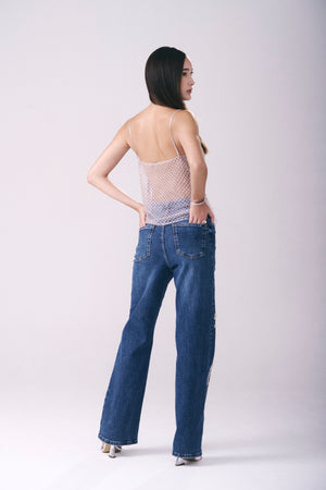 A calça jeans reta com bordado de ramo de cerejeira e ideograma traz um toque artesanal e exclusivo à peça. Com modelagem clássica, cós com passantes e bolsos frontais e posteriores, oferece conforto e elegância para diversas ocasiões. O fechamento por zíper e botão garante praticidade, enquanto o bordado manual destaca sua sofisticação única.