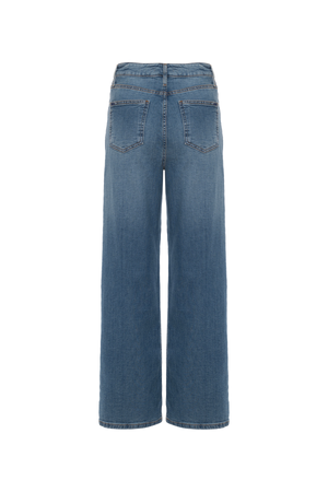 Esta calça jeans wide leg em denim Defender combina estilo e conforto com um toque sofisticado. O cós com passantes e o fechamento frontal por zíper e botão garantem ajuste perfeito, enquanto os bolsos frontais e traseiros oferecem praticidade. Detalhes exclusivos, como as plaquinhas metálicas em formato de ideograma “sakura”, conferem um charme único e elegante à peça, ideal para quem busca uma aparência moderna e refinada.