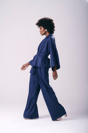 A calça xadrez de alfaiataria apresenta modelagem ampla que proporciona conforto e liberdade de movimento, aliada a pregas frontais que conferem estrutura e sofisticação ao design. Os bolsos laterais oferecem funcionalidade sem comprometer a estética, enquanto o fechamento por zíper e botão garante segurança e ajuste preciso. Ideal para composições formais que exigem elegância e praticidade.