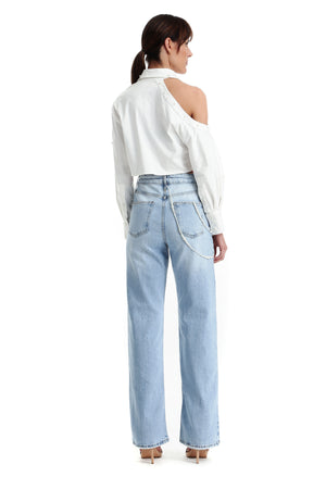 Camisa Descontruída Bordada e Detalhe Vazado no Ombro