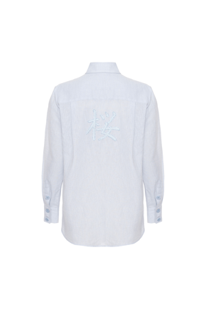 Esta camisa em cambraia de linho combina elegância e conforto com sua modelagem reta e gola tradicional. O bolso frontal e as mangas longas com punhos ressaltam seu design clássico, enquanto o fechamento por botões e a barra arredondada garantem acabamento refinado. O destaque fica por conta do bordado nas costas com o ideograma japonês “Sakura”, que adiciona um toque sofisticado e cultural à peça. Perfeita para quem busca uma camisa atemporal com detalhes únicos.
