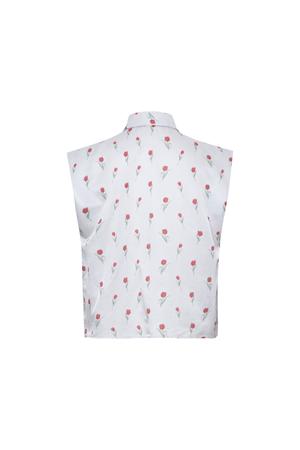 A Camisa Sem Mangas Tulipas é perfeita para adicionar um toque romântico ao visual. Com estampa delicada de tulipas vermelhas, ela é confeccionada em uma mistura suave de algodão e seda, garantindo conforto e sofisticação. Ideal para quem busca um look elegante e exclusivo.