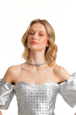 Choker "nó" de rolotê em cristais, feito a mão. O toque final que sua produção pede.