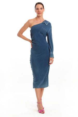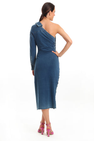 Vestido Denim MÍdi Camisa Desconstruída