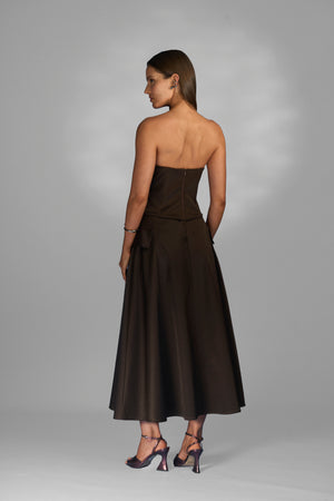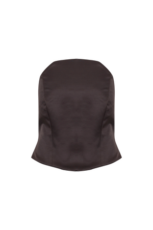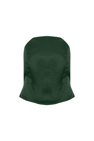 Este corselet abaulado em tricoline sobressai pelo seu corte preciso que realça a silhueta com elegância. Seu acabamento liso, sem alças, combinado com o zíper invisível nas costas, proporciona um ajuste confortável e discreto.