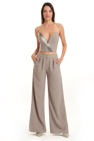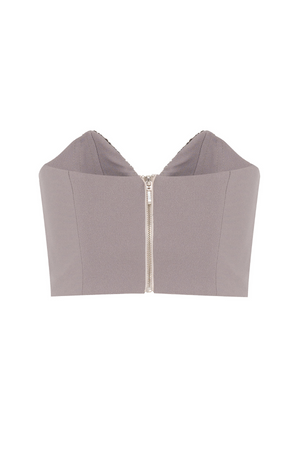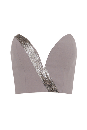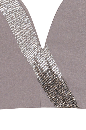 Corselet de crepe, decote profundo em V, bordado em tons degrade.