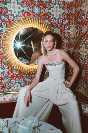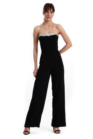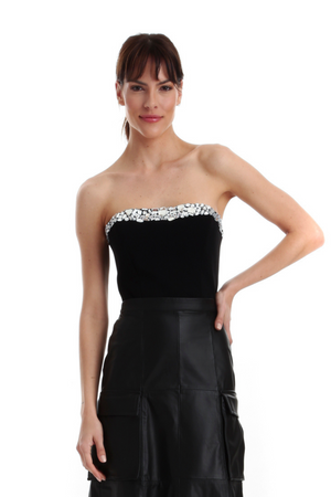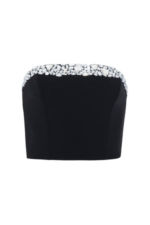 Corselet Reto Crepe Bordado Com Cristais
