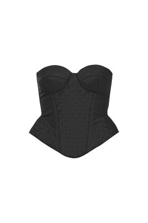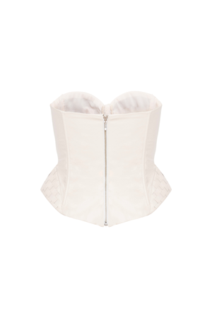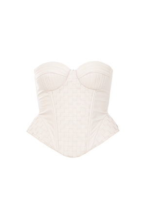 Este corset em couro combina bojo estruturado e recortes com barbatanas para um caimento elegante e definido. O destaque fica por conta da trama de tiras de couro tressê feita à mão, que adiciona um toque artesanal e exclusivo à peça. O fechamento posterior por zíper garante praticidade sem perder a sofisticação. Uma escolha refinada para quem valoriza design e qualidade.