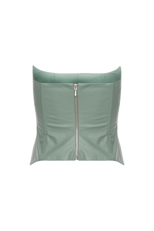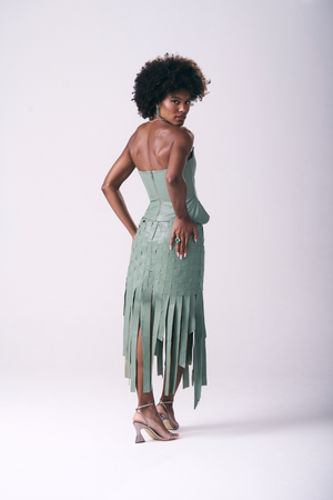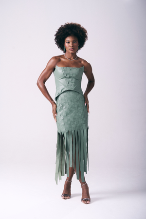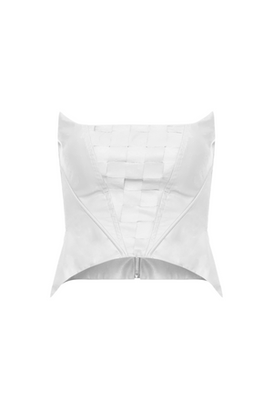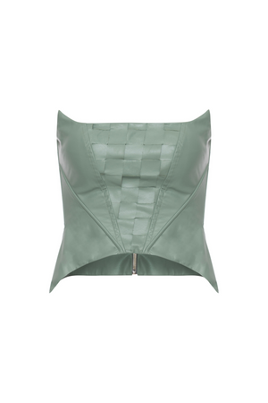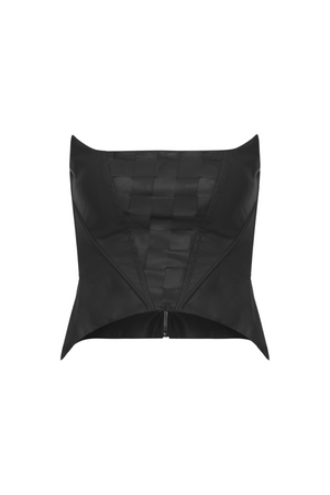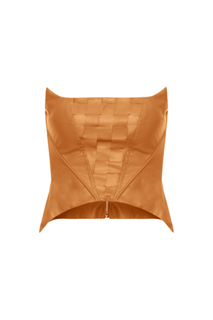 Corset em couro natural que une sofisticação e estrutura. O decote reto com pontas laterais realça a silhueta, enquanto a modelagem ajustada ao corpo proporciona conforto e elegância. Detalhes em tressê de tiras de couro na frente conferem textura e movimento. Recortes internos garantem sustentação impecável, e a barra levemente curvada com pontas nas extremidades completa o design refinado. Fechamento por zíper posterior para praticidade.