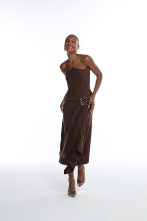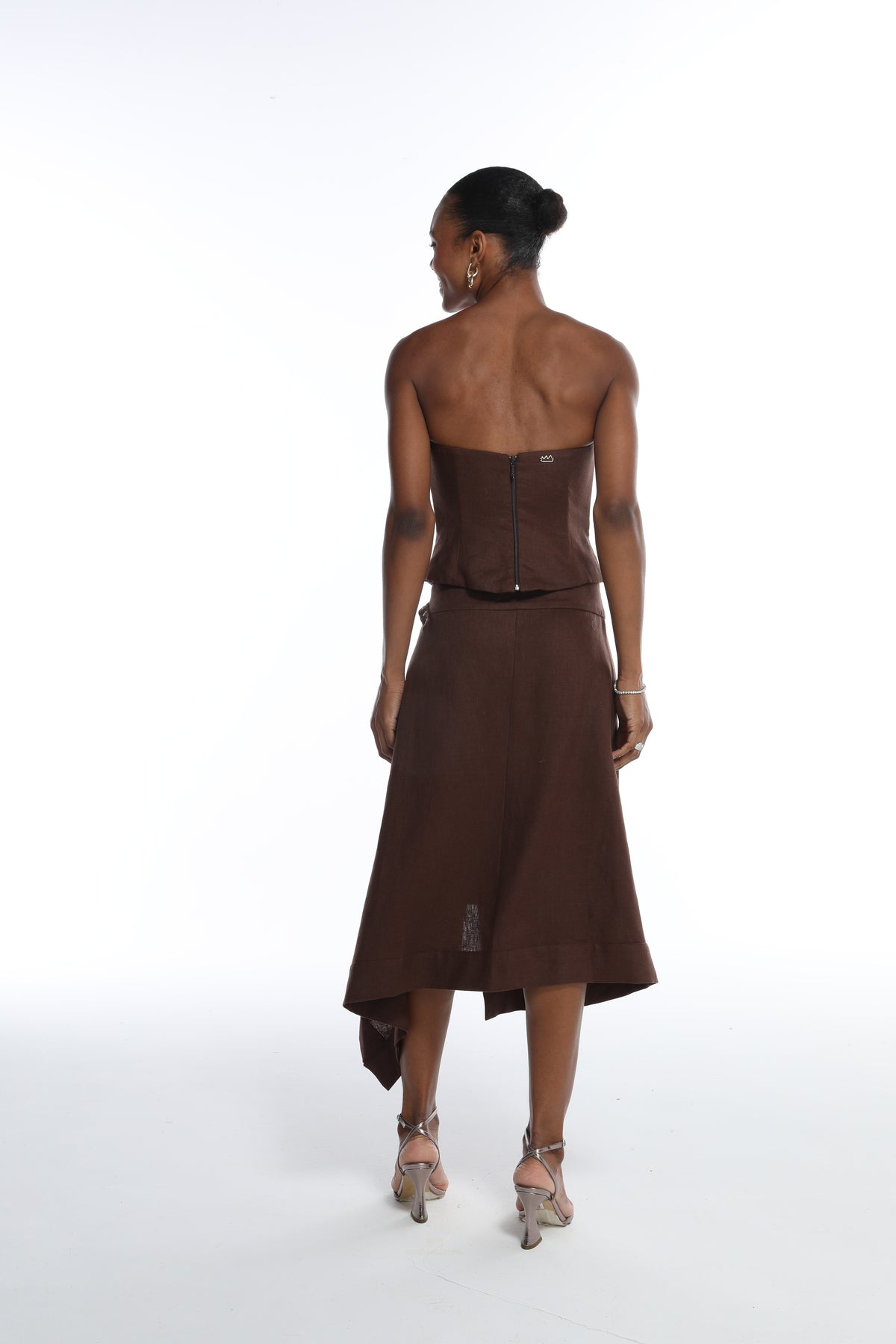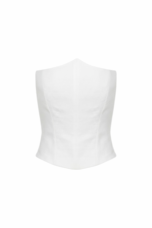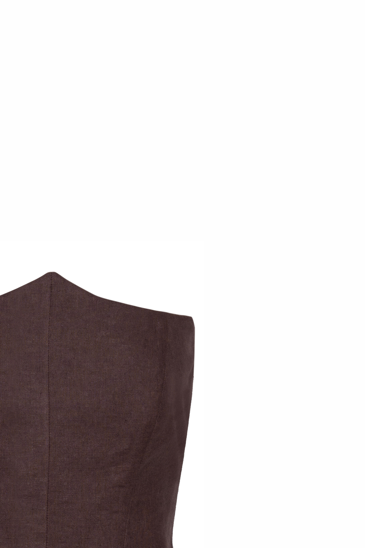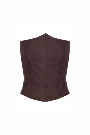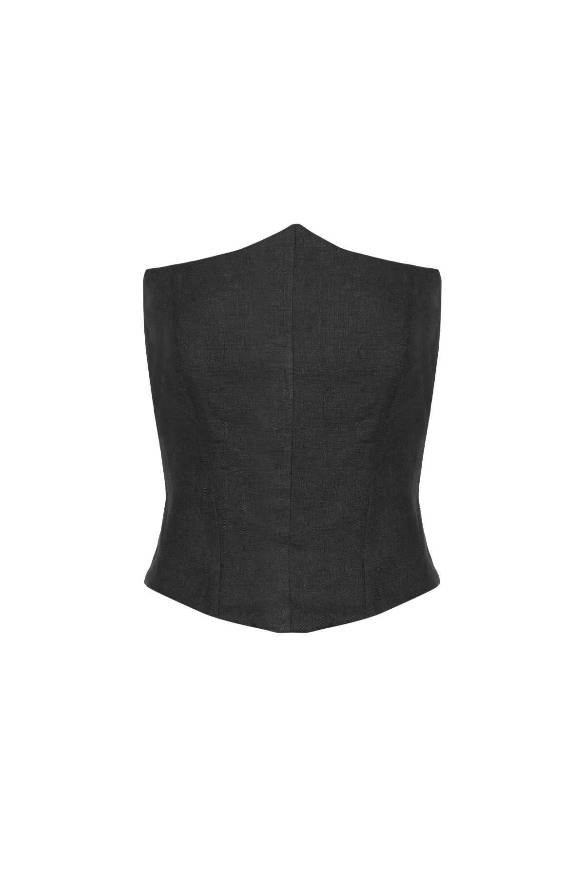 Corset 100% linho com decote reto assimétrico levemente curvado, com modelagem estruturada. Possui fechamento em zíper nas costas.