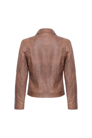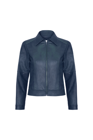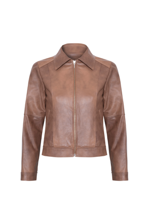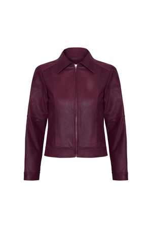 Jaqueta de couro clássica, com punho, bolsos laterais e zíper frontal. Com uma modelagem moderna com recortes sofisticados.