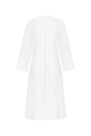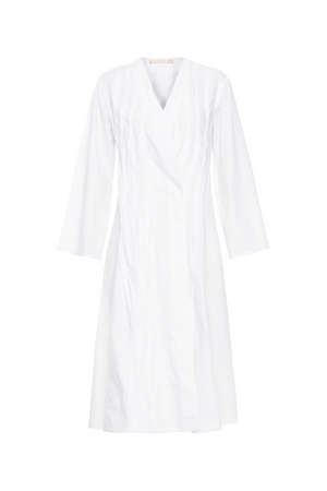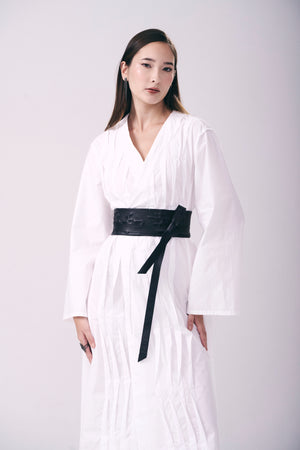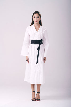 Kimono mídi em tricoline que combina elegância e conforto. Seu corte reto e mangas amplas criam uma silhueta fluida e sofisticada, enquanto o decote em V transpassado adiciona movimento e feminilidade. As pregas verticais na frente conferem textura e profundidade ao design, realçando a figura de forma discreta. Acabamento reto na barra completa o visual refinado. Peça versátil para looks do dia ou noite.