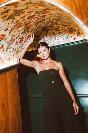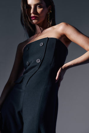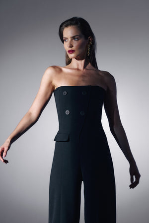 Conheça nosso Macacão Alfaiataria sem alças, com elegantes enfeites de botões, perfeito para um look sofisticado e moderno. Confeccionado em tecido de alta qualidade, garante conforto e durabilidade. Complemente seu guarda-roupa com essa peça versátil e exclusiva.