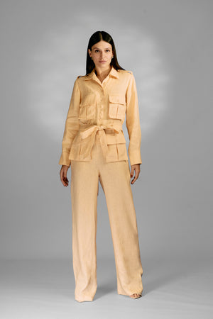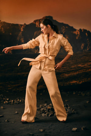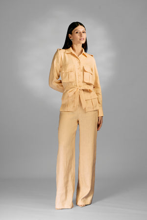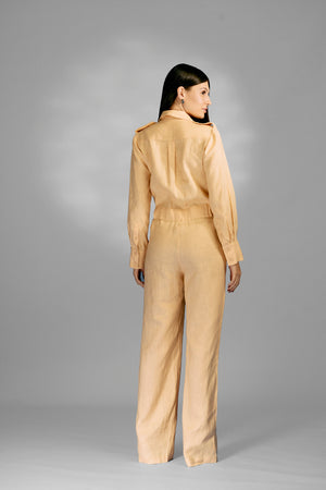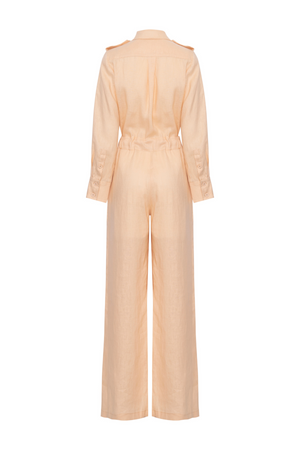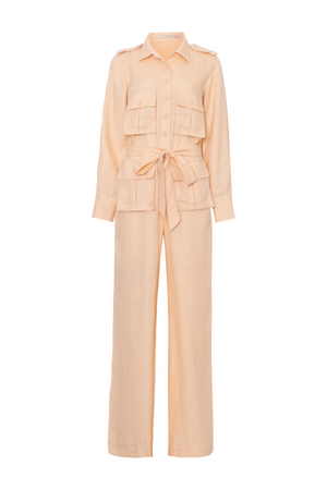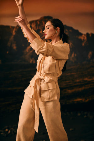 Um must-have sofisticado para o seu guarda-roupa. O clássico e elegante macacão de linho 100% traz um toque de luxo ao seu visual. Com fechamento por botões, mangas longas e bolsos utilitários, além de detalhes nos ombros e uma faixa cinto, você estará sempre elegante e pronta para qualquer ocasião.