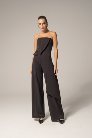 Macacão Wave sem alças possui um elegante decote reto e detalhes em forma de onda, proporcionando um movimento sutil e sofisticado ao look. Seu caimento impecável de alfaiataria garante um visual elegante e refinado. Aproveite todo o conforto e estilo que este macacão oferece.