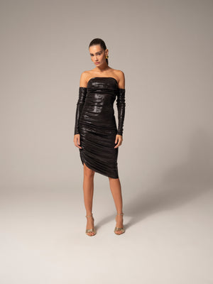 Mangas avulsas em jersey silky foil para trazer estilo e moda ao seu look. Adicione um toque de brilho com nossas mangas removíveis. Complemente qualquer roupa com facilidade e elegância. Aumente suas opções de estilo com as mangas em jersey silky foil. Obs: Foto com o vestido é ilustrativa.