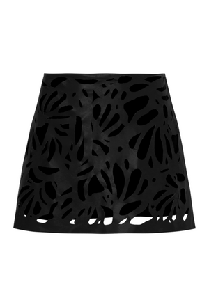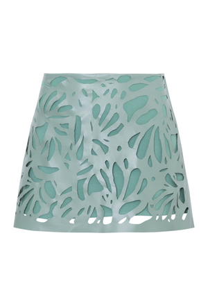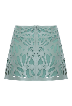 Mini saia de couro natural com recortes vazados em forma de conchas, trazendo um toque moderno e elegante à peça. Feita com couro de alta qualidade, garante conforto e durabilidade. Adicione um toque de estilo ao seu guarda-roupa com esta saia única.