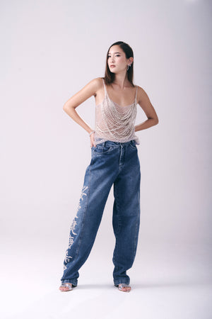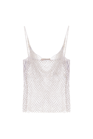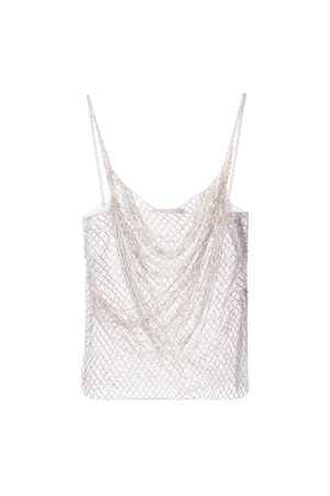 Esta regata em tule illusion bordada combina delicadeza e sofisticação com suas alças finas e modelagem reta. As franjas bordadas cruzadas na parte frontal criam um elegante padrão em camadas, enquanto o acabamento limpo na barra garante um toque refinado. Perfeita para quem busca um visual chique e contemporâneo.