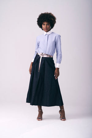 A Saia Jeans Mídi Pregas Defender combina elegância e funcionalidade com seu design refinado. As pregas frontais conferem um toque de sofisticação, enquanto o cós reto assegura um caimento impecável. Completa com bolsos discretos e fechamento por zíper na parte de trás, esta peça é perfeita para quem busca estilo contemporâneo com conforto e praticidade.