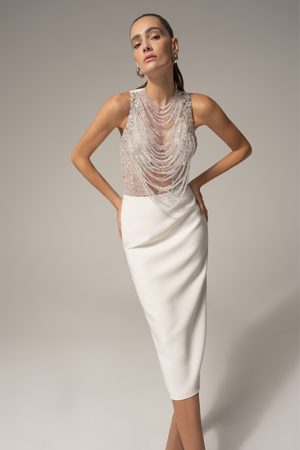 A saia lápis de crepe mídi é elegante e versátil. Com um design clássico e fenda atrás, permite liberdade de movimento sendo perfeita para diversas ocasiões. Feita com tecido de crepe, proporciona um caimento confortável e sofisticado. Adicione estilo ao seu guarda-roupa com essa peça essencial.