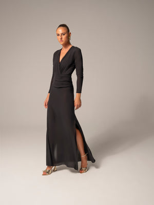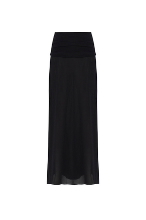 Deslumbre-se com a elegância desta saia longa de georgete de seda. Sua cintura plissada e a fenda lateral adicionam um toque de sofisticação, enquanto o tecido de seda proporciona um caimento luxuoso. Perfeita para eventos especiais e ocasiões luxuosas. Não perca a oportunidade de ter essa peça exclusiva em seu guarda-roupa.