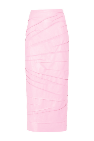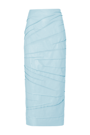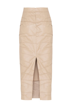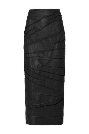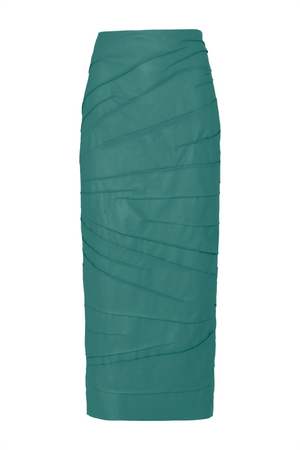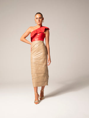 Saia MÍdi Couro Natural Drapeada Com Fenda