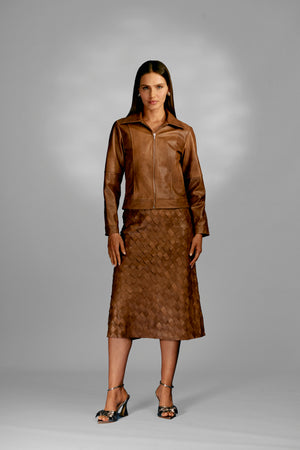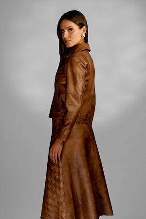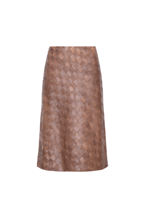 Trazendo uma textura rica e única com seu acabamento trançado artesanal, a Saia Tressê Couro Natural Mídi Evasê garante elegância e sofisticação. Seu corte evasê valoriza o caimento e proporciona um visual refinado. Uma peça de luxo para quem busca exclusividade e elegância.