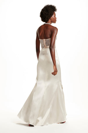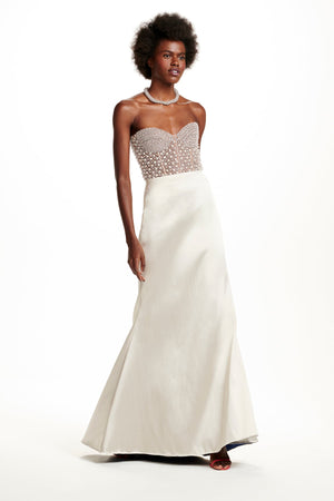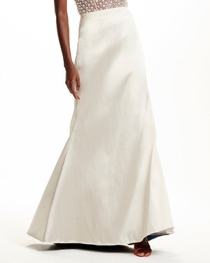 Saia longa em modelagem sereia de zibeline. A saia sereia confere ao look glamour, alongando a silhueta, criando propostas sofisticadas, quando usadas com blusas de sedas ou croppeds bordados.