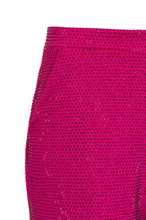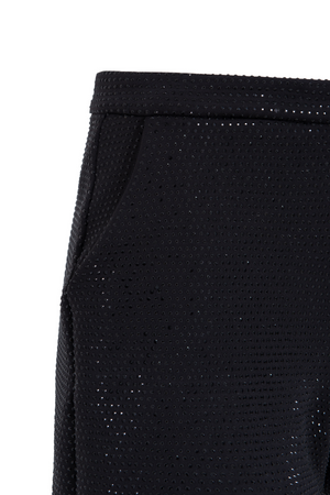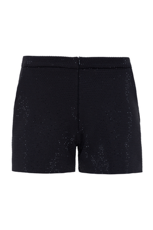 Short modelagem alfaiataria, todo com aplicações em cristais, com bolsos, fechamento por zíper invisível frontal.