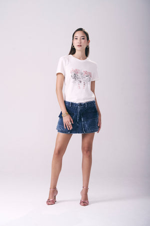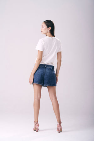 Short saia cargo em jeans Defender, oferecendo robustez e estilo. Apresenta bolsos frontais amplos com aba para praticidade, cós com passantes e fechamento frontal por zíper e botão, garantindo ajuste seguro e conforto refinado. Ideal para ocasiões que pedem um toque casual sofisticado.