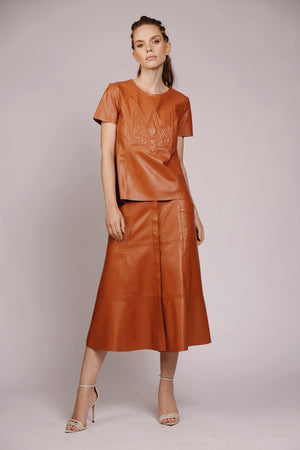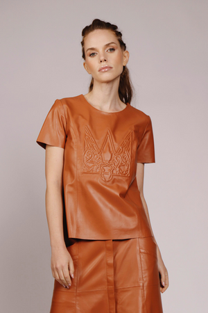 Nossa t-shirt em couro com mangas é perfeita, moderna e muito criativa, no design aplicação em alto relevo revelam técnicas do nosso feito à mão. Você vai amar o conforto e leveza do couro e modelagem.